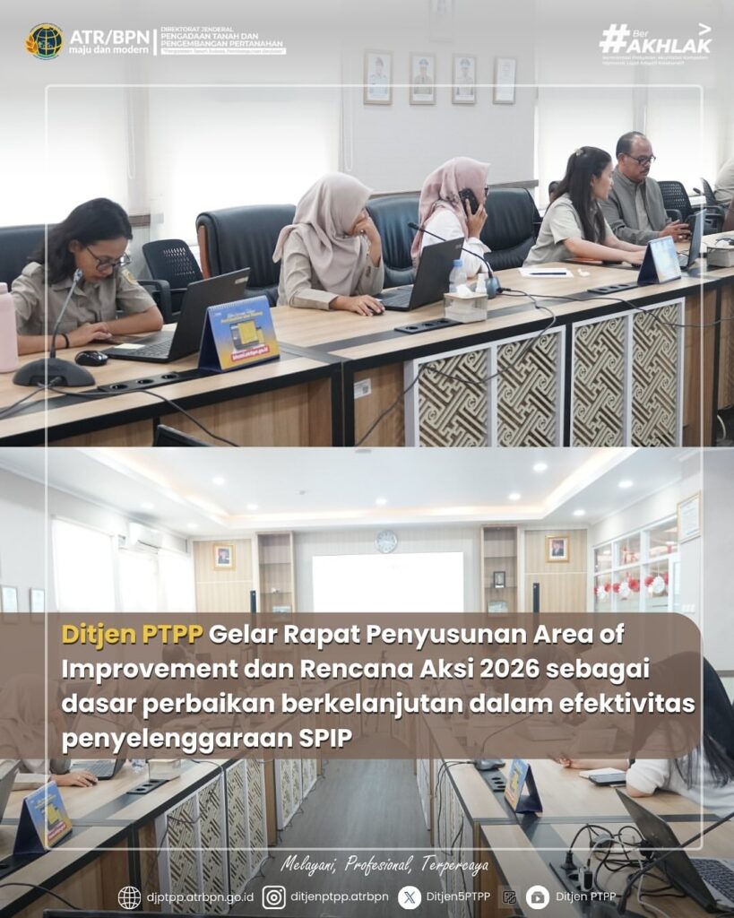 “Area of Improvement ini diharapkan menjadi pedoman bersama, agar setiap unit dapat bergerak searah dan hasilnya lebih terukur. Dengan demikian, Ditjen PTPP mampu memperkuat peran dalam mendukung Program Strategis Nasional serta menciptakan tata kelola pertanahan yang lebih baik,” demikian harapan yang disampaikan dalam forum tersebut.