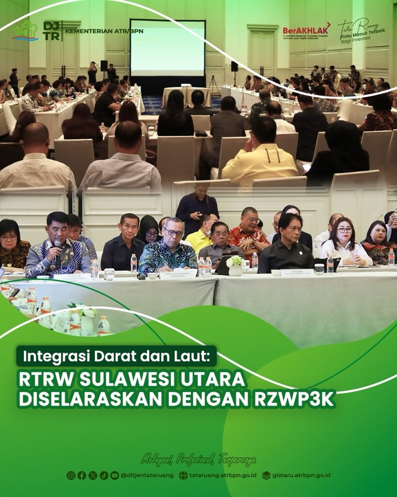 Jakarta – Kementerian Agraria dan Tata Ruang atau Badan Pertanahan Nasional (ATR/BPN) melalui Direktorat Jenderal Tata Ruang menyelenggarakan Rapat Koordinasi Lintas Sektor (Linsek) Rencana Tata Ruang Wilayah (RTRW) Provinsi Sulawesi Utara 2025-2044 pada Senin (16/09).