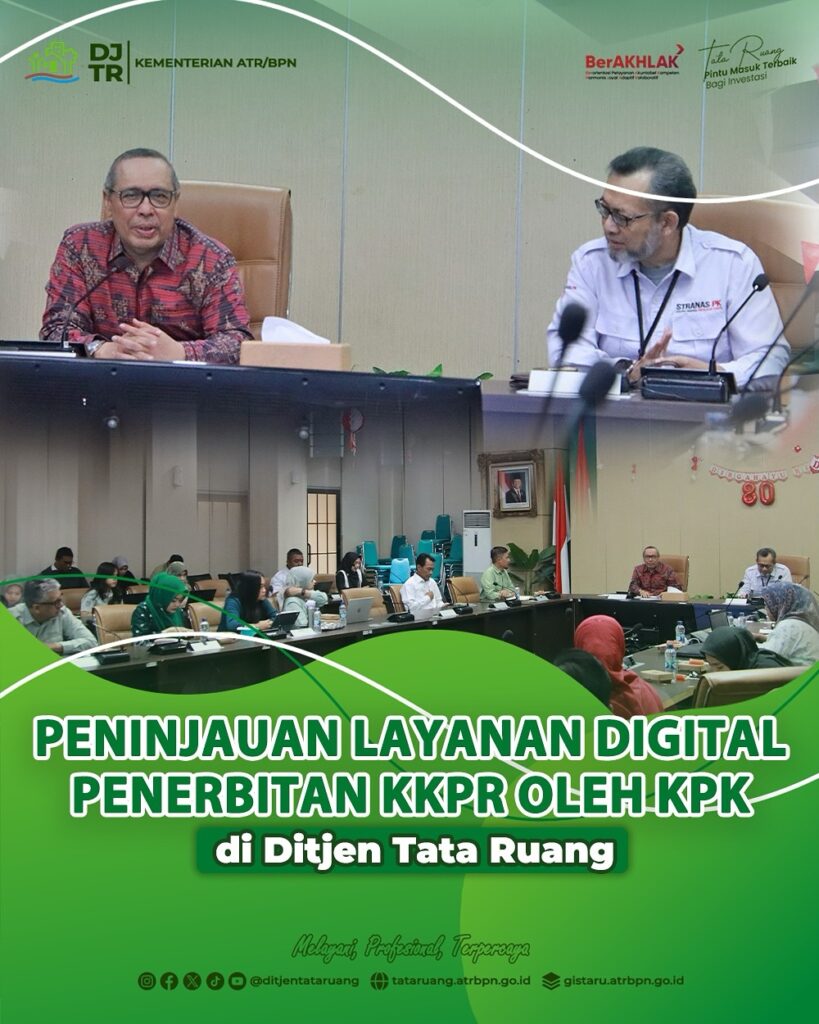 Jakarta – Direktorat Jenderal Tata Ruang menerima kunjungan Tim Strategi Nasional Pencegahan Korupsi (Stranas PK) Komisi Pemberantasan Korupsi (KPK). Kunjungan ini dilakukan dalam rangka peninjauan Layanan Publik Digital Penerbitan Kesesuaian Kegiatan Pemanfaatan Ruang (KKPR) oleh KPK pada Rabu (27/08/2025).