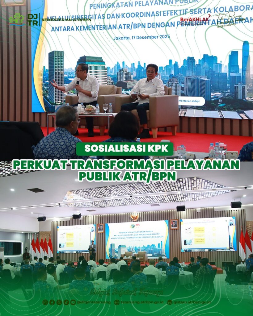 Melalui Sinergitas dan Koordinasi Efektif serta Kolaborasi antara Kementerian ATR/BPN dengan Pemerintah Daerah” sebagai langkah penguatan transformasi pelayanan publik yang transparan, akuntabel, dan bebas pungutan liar (pungli), di Jakarta pada Rabu (17/12/2025).