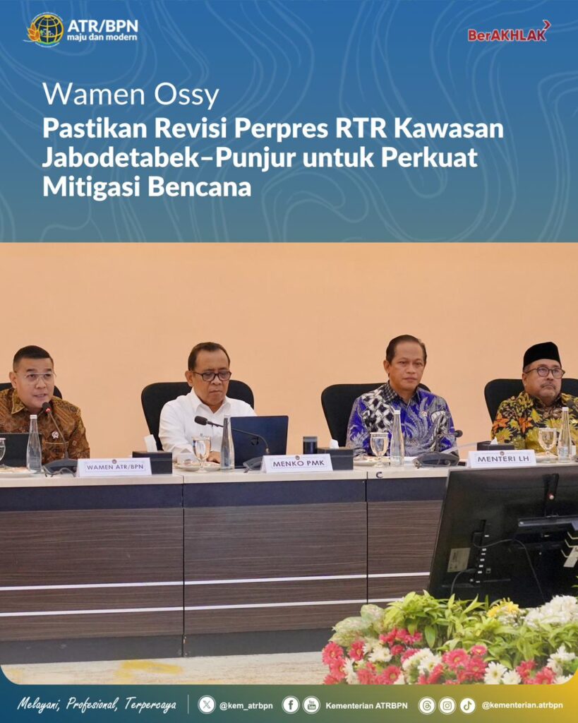 Jakarta – Pemerintah mengambil langkah konkret dalam upaya mitigasi banjir dan longsor di Wilayah Sungai Ciliwung melalui rencana revisi Peraturan Presiden Nomor 60 Tahun 2020 tentang Rencana Tata Ruang Kawasan Perkotaan Jakarta, Bogor, Depok, Tangerang, Bekasi, Puncak, dan Cianjur (Jabodetabek–Punjur). Langkah tersebut ditegaskan Wakil Menteri Agraria dan Tata Ruang/Wakil Kepala Badan Pertanahan Nasional (Wamen ATR/Waka BPN), Ossy Dermawan, dalam Rapat Tingkat Menteri pada Jumat (09/01/2026).